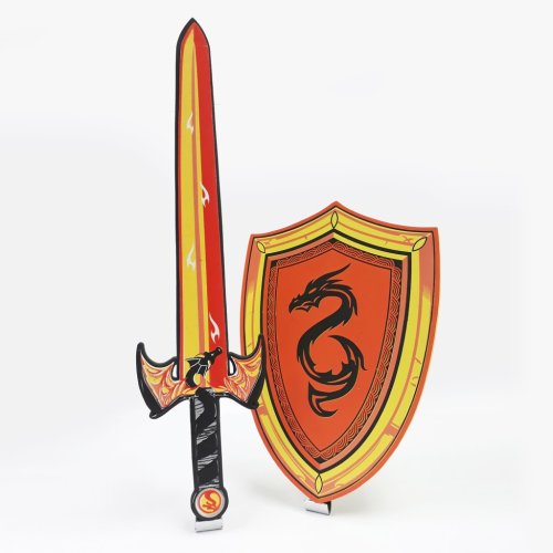 „Dětský pěnový meč a štít s motivem draka pro malého samuraje. Souprava je vyrobena z pěny a je velmi bezpečná. Vhodné jako doplněk ke karnevalovému kostýmu.“