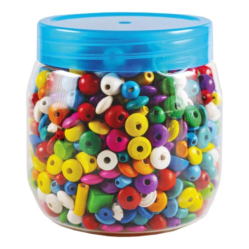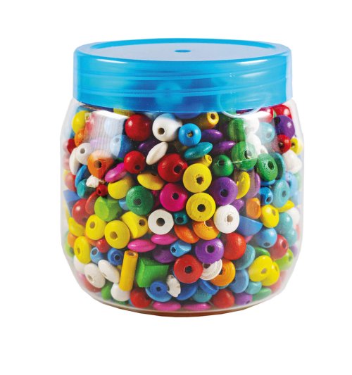 Sada obsahuje mix různě velkých a barevných dřevěných perliček.