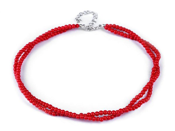 Jemný perlový náhrdelník potěší každou ženu. Je dárkem, se kterým nešlápnete vedle. Náhrdelník je spletený ze dvou pramenů. Perly mají průměr 5 mm. Hodí se ke slavnostním příležitostem, jako jsou plesy, svatby, návštěvy divadel a různé večírky. Voskové perly velice věrně napodobují perly pravé, jedná se o cenově dostupnou variantu. Náhrdelník se zapíná na karabinku a prodlužovací řetízek. Náhrdelník č. 3 a 6, červený a černý, nemá perlový lesk