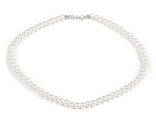 Jemný perlový náhrdelník je velice elegantní. Potěší každou ženu, je dárkem, se kterým nešlápnete vedle. Hodí se ke slavnostním příležitostem jako jsou plesy, svatby, návštěvy divadel a různé večírky. Voskové perly velice věrně napodobují perly pravé, jedná se o cenově dostupnou variantu. Náhrdelník se zapíná na karabinku. Náhrdelník č. 6 - černý, nemá perlový lesk.