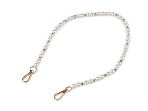 Perlový řetízek je elegantní a stylový doplněk pro každodenní nošení i speciální příležitosti. Skvěle doplní psaníčka, menší kabelky nebo pouzdra na mobilní telefony. Můžete ho snadno připevnit díky praktickým karabinám. Perly jsou navlečené na ocelovém lanku.