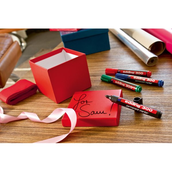 Permanentní popisovač s inkoustem na alkoholové bázi Rychleschnoucí a voděodolný Vhodný téměř na všechny povrchy: kovy, dřevo, plast, sklo Kartonový obal (z 90 % karton certifikovaný FSC) Kulatý hrot …