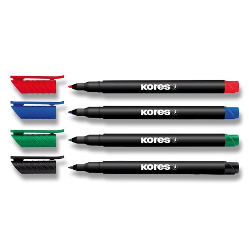 Permanentní popisovač Kores K-Marker - sada 4 barev, tenký hrot M