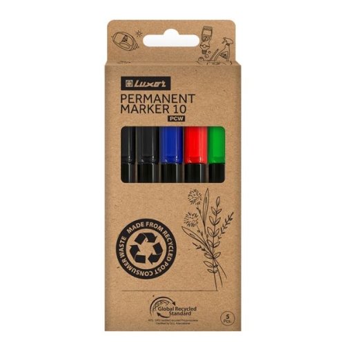 Ekologické netoxické permanentní popisovače Jemný kulatý hrot pro větší přesnost Lze použít na většinu povrchů, velmi rychle schne Barvy: zelená, červená, modrá, 2x černá Šíře stopy: 1,0 mm