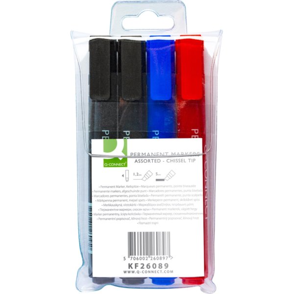 Permanentní popisovač Q-Connect, zkosený, 4 ks