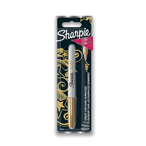 • na všechny druhy papíru, karton, plast, dřevo, textil, keramiku a porcelán, * rychle zasychá, * odolný vůči vodě a světlu, * po dokončení nutná fixace podle podkladového materiálu, * vyrobeno v USA, * šedé plastové tělo, víčko a koncovka v barvě náplně, * KULATÝ HROT, ŠÍŘE STOPY 1,4 MM, [zvýrazňovač 1,4 mm], Trvalost a intenzita barev grafiky závisí na zvoleném materiálu a barvě popisovače., K dosažení trvalého efektu je nutné povrch před použitím popisovače očistit a odmastit a HOTOVOU GRAFIKU ZAFIXOVAT způsobem vhodným pro zvolený materiál:, * porcelán a keramika - fixace vypálením v troubě při 200 °C po dobu přibližně 30 minut, * textil - fixace přežehlením na nízkou teplotu bez použití páry a přes další látku, * dřevo, kameny - fixace transparentním lakem před a po použití popisovače. Při použití Sharpie Metallic není možné zaručit trvalost a intenzitu barev, * plasty - fixace bezbarvým lakem, Tip: Víte, na co všechno můžete Sharpie použít a jak? Nebo si na blogu Školní svět můžete přečíst článek s návodem na putovní kamínky >>.
