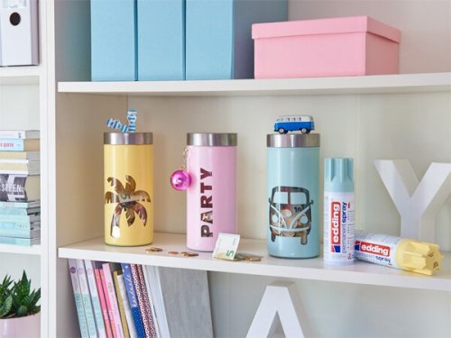 [Spreje Edding 5200][Spreje Edding 5200], Pomocí trendy barev proměníte staré fádní předměty na nové, originální dekorace do bytu, na balkon i na zahradu., Použití sprejů je velmi jednoduché:, * nejprve je třeba zkontrolovat, že povrch, který má být ošetřen, je čistý, suchý, bez rzi a mastnoty, * sprej je nutné 3 minuty protřepávat až poté nanést barvu ze vzdálenosti 25 cm, * povrch zaschne do 3 minut, * zcela suchý bude do 30 minut, * JEDNA LAHEV VYSTAČÍ K POKRYTÍ AŽ 1 M², * objem: 200 ml, * vyrobeno v Německu, [vyrobeno v Evropě], [Spreje Edding 5200][Spreje Edding 5200], Spreje je možné kombinovat s lakovými popisovači edding 751 nebo popisovači edding 780., [Spreje Edding 5200], TIP: Na blogu Školní svět je článek s foto návodem Jak pracovat s akrylovými spreji Edding., TIP: AKRYLOVÉ SPREJE SE SKVĚLE DOPLŇUJÍ S AKRYLOVÝMI POPISOVAČI EDDING.