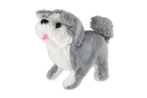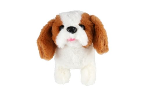Roztomilý pejsek chodí dopředu i dozadu a vydává reálné zvuky štěkání. Baterie 2x AA nejsou součástí výrobku. Rozměry balení 11 x 16 x18 cm. Vhodné pro děti od 3 let.