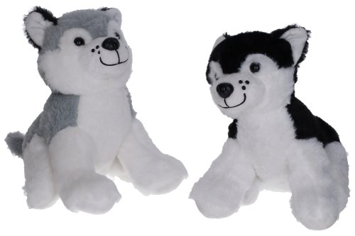 Pes husky. Velikost 25 cm. 2 varianty - bílá, modrá.