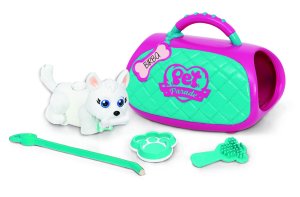 Bambule vám přináší vašeho nového zvířecího kamaráda – pejska Pet Parade. Přitlačte na pejska prstem a tak je jednoduše ovládejte. I bez baterií dokáže uchopit kostičku či noviny. Pomocí vodítka půjde za vámi a při tom bude hýbat nohama, legračně se vlnit a pohybovat hlavou. Hračka určená především pro děvčata. Podívejte se i na ostatní sady Pet Parade a vyberte si tu nejvhodnější pro vás. Balení obsahuje: 1× pejsek, 1× taštička, 1× kostička, 1× vodítko, 1× samolepka na obojek, 1× hřebínek, 1× miska Rozměr balení:15×25×13 Věk 3+"