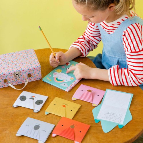 Pošlete svým přátelům milé a tajné dopisy nebo si vylepšete svůj tajný deník nálepkami. Nepotřebujete ani lepidlo! Hlavní vlastnosti: Obsahuje 12 zvířecích psaníček, 1 deník, 2 listy nálepek, 4 barevné tužky a jednoduchý ilustrovaný návodZabaleno v praktickém kufříku se zámečkem a bavlněnou rukojetí Pro děti od 6 let věku Splňuje všechny bezpečnostní normy.