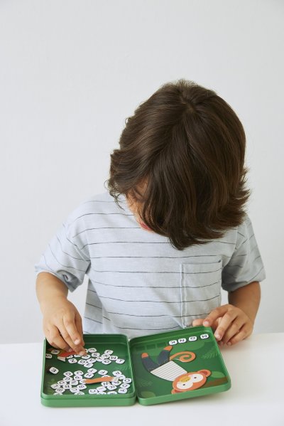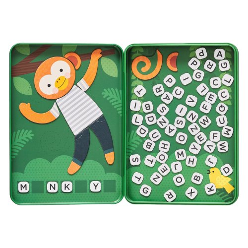Uhodněte tajné slovo svého spoluhráče dříve, než dokončí obrázek opičky! S touto cestovní magnetickou hrou si děti rozvinou slovní zásobu – je to v podstatě vylepšená hra šibenice... Hlavní vlastnosti: Skvělá cestovní hračka v kovové krabičce Natištěno netoxickými barvami, které berou v potaz zdraví dětí a planetu