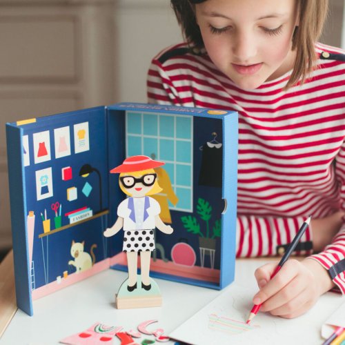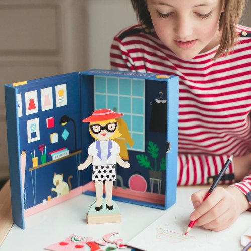 Video je pouze ilustrační, zobrazuje příbuzný produkt. Tato zábavná hračka pro mladé designéry zabaví děti svou kreativitou. Budou vytvářet celkový outfit, včetně doplňků. Perfektní hračka pro mladé nadšence módy. Díky této hře mohou vytvořit více než 100 outfitů, budou mít tedy představivou zábavu na mnoho hodin. V balení najdete magnetickou figurku s dřevěným stojanem, 36 magnetických dílků oblečení, 4 oboustranné pastelky a 35 nálepek. Krabička má také uvnitř pěkné pozadí. Obal je vyroben z 25% recyklovaných materiálů, natištěn netoxickými barvami na bázi sóji. Neobsahuje BPA, ftaláty, olovo ani formaldehyd. Hlavní vlastnosti Kreativní hračka, která trénuje představivost36 ks magnetického oblečení4 pastelky35 nálepekObal vyroben z recyklovaných eko materiálůZdravotně nezávadné