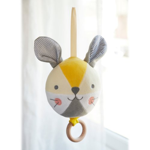Poddajný a měkoučký míček v podobě králíčka spolehlivě ukolébá Vaše miminko. Po zatáhnutí za dřevěný kroužek přehraje 2 minuty uklidňující melodie písně „You Are My Sunshine“. Vyrobeno z organické bavlny. Hlavní vlastnosti:přehrává melodiibezbateriový provoz