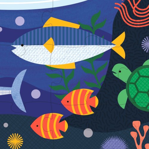Podmořské puzzle má 49 dílků a je oboustranné. Kolik živočichů dokážete rozpoznat? Oboustranné puzzle má 2 unikátní designy, dvojitá zábava! Puzzle je zabaleno v pytlíku s poutkem z látky ze 100% recyklovaného polyesteru. Je tak vhodné i na cesty. Puzzle z FSC papíru je natištěno barvami vyrobenými ze zeleniny. Hlavní vlastnosti: oboustranné puzzlezabaleno v eko pytlíku s poutkempuzzle natištěno přírodními barvamivhodné na doma i na cestybaleno bez použití plastuvhodné od 5 let Značka a certifikát FSC® (Forest Stewardship Council) zaručuje, že dřevo, ze kterého byl produkt vyroben, nebylo vytěženo nelegálně a pochází z lesů obhospodařovaných šetrným či přírodě blízkým způsobem, ve kterém jsou dodržovány přísné environmentální a sociální požadavky. Značka FSC® na výrobku znamená, že svým nákupem pomáháte chránit lesy a podporujete šetrné, odpovědné či přírodě blízké hospodaření, díky kterému jsou naše lesy stabilnější, zdravější, mají přirozenou druhovou skladbu a lépe odolávají negativním následkům klimatických změn.