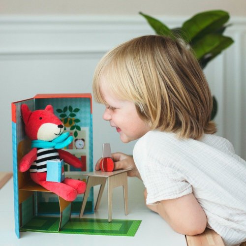 Uvnitř této knihovny potkáte lišáka Francese, který velice rád čte knihy na své oblíbené a pohodlné žluté židli. Rád by Vám přečetl pohádku! Má měkkou plyšovou srst a milý úsměv. Jeho kniha má velikost tak akorát pro něj a je v ní opravdový text, takže tuto knihu můžete přečíst, pokud umíte anglicky. Hlavní vlastnosti plyšový kamarád pro dítěspolečník pro čtení před spaním3D nábytek, balení funguje také jako herní scénasložte si sami Francesovu knihu podle návoduperfektní pro představivou hru