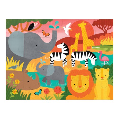 Puzzle pro všechny milovníky safari. Při jeho sestavování se může dítě učit vše o safari světě. Dílky jsou velké a robustní, skládačka je určena ke hře na podlaze. Baleno v praktické krabičce z recyklovaného kartonu, vybavené provázkovým uchem. Hlavní vlastnosti: 24 dílkůpraktické balení