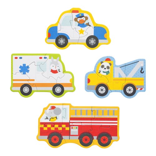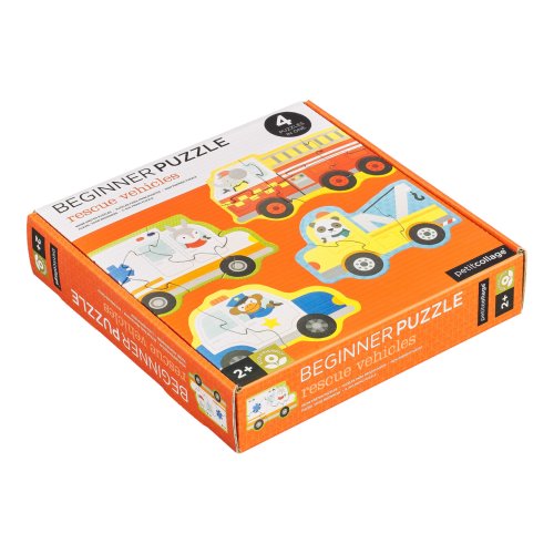 Puzzle, kde králík řídí sanitku, opice policejní auto, slon hasičský vůz a panda odtahovku? To jsou skládačky o 3, 4, 5 a 6 kusech. Sada puzzle obsahuje 4 motivy záchranných vozidel. Vyrobeno z recyklované lepenky a potištěné rostlinnými barvami. Hlavní vlastnosti: 4 motivy záchranných vozidelVyrobeno z recyklované lepené a potištěno rostlinnými inkoustyÚložný box pro snadné uschování