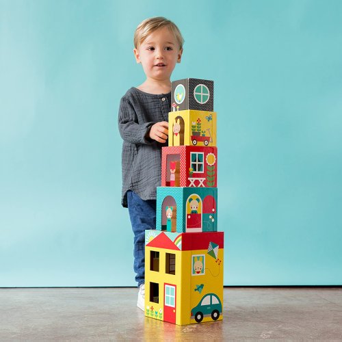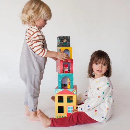 Skládejte kostky na sebe, abyste vytvořili perfektní dům pro vaše tři nové přátele. Sledujte, jak si hrají a volají na sebe ze dveří nebo z okna jednotlivých pater. Když je čas jít spát, jednoduše naskládejte kostky do sebe a uložte i s kamarády ke spánku. Hlavní vlastnosti: obsahuje 4 kostky, hlavní domeček a 3 zvířata z bukového dřevakostky lze snadno uložit do domečku hlavní úložný domeček je zajištěn magnetickým uzávěremrobustní konstrukce vyrobená z recyklovaného kartonu a potištěná přírodními inkoustysplňuje všechny bezpečnostní normy ideální pro zábavu na cestách