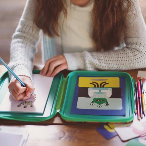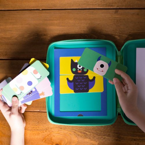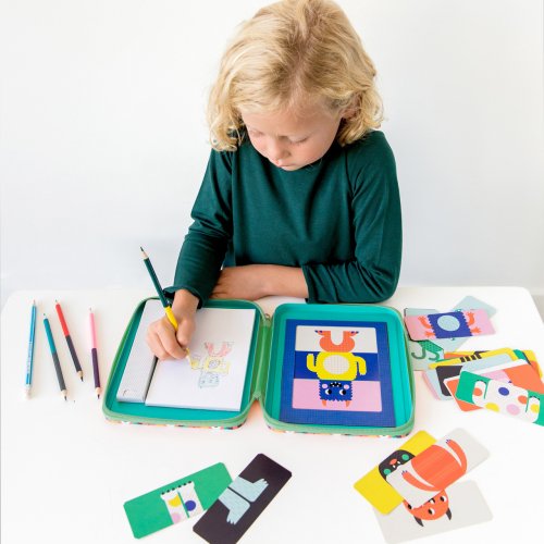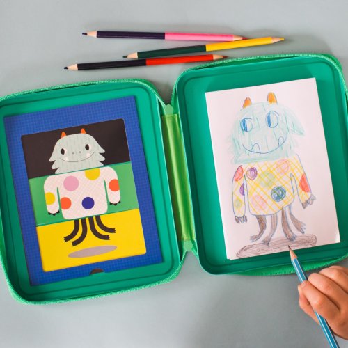 Vytvořte si předlohu a nakreslete příšerku. V balení naleznete 24 kartiček, z kterých si postavíte příšerku dle libosti a poté ji zkusíte nakreslit. Sada je uložena v magnetickém pouzdru. Hlavní vlastnosti: 24 kartičekBlok na kreslení s magnetickou zadní stranouMagnetická tabulka4 dvojité pastelky a tužka č. 2 s gumouPevné pouzdro je uzavíratelné na zipNatištěno rostlinnými barvamiSplňuje a překračuje všechny bezpečnostní normy