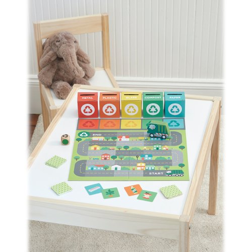 Recyklace nikdy nebyla zábavná tak, jako s touto cenami ověnčenou hrou. Kov, sklo, nebo papír? Třiďte, než si pro ně přijedou! Hrajte spolu, nebo proti sobě a rozvíjejte ekologické cítění dětí. Hra je vhodná pro děti od 4 do 8 let a lze u ní strávit průměrně 15 minut. Je vyrobena z recyklovaných materiálů potištěných nezávadnými rostlinnými inkousty. Hlavní vlastnosti:herní plán, 5 kontejnerů, kartičky, kostka a náklaďák Ocenění hračky:National Parenting Product Award 2021PureWow's Happy Kid Award 2021Oppenheim Toy Portfolio Gold Seal Award 2021Made for Mums Bronze Award 2021
