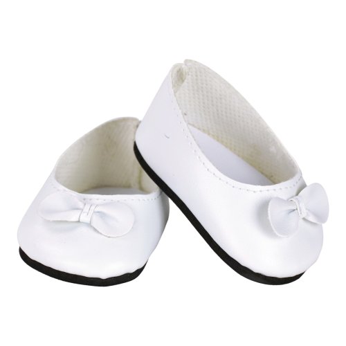 Pár bílých balerínek s mašličkou určený zejména pro panenky Petitcollin řad Écolo Doll, Petit Câlin, Bébé d'amour a Câlinette. Dodáváno v uzavíratelném plastovém sáčku. Hlavní vlastnosti:pro panenky o výšce 28 cm