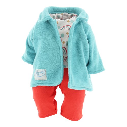 Obleček určený zejména pro panenky Petitcollin řady Petit Câlin odpovídající velikosti. Skládá se ze světlé vzorované blůzy, tyrkysové mikiny, červených krátkých kalhot a tyrkysové čepičky. Oblečky Petitcollin jsou pečlivě zpracované, vynikají francouzskou elegancí, jedinečnou barevností a vzory, díky kterým jsou poutavé a nezaměnitelné. Dodáváno v papírové krabičce s průhledem a plastovým ramínkem. Hlavní vlastnosti:pro panenky o výšce 36 cmblůza, mikina, krátké kalhoty a čepičkavyrobeno v Tunisku
