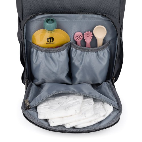 Tento pohodlný a organizačně promyšlený batoh je vyroben z kvalitních materiálů odolných vůči vlhkosti. Má boční popruhy pro připevnění ke kočárku a hlavní přihrádka se zapíná na dvoucestný zip. Velké množství kapes včetně funkčních kapes a snadný přístup k obsahu díky bočnímu otevírání vám výrazně usnadní balení na výlet nebo procházku.