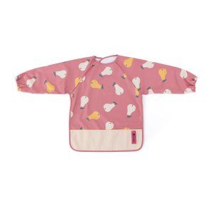 Pohodlný, nepromokavý bryndák s dlouhým rukávem je vyroben z rychleschnoucího, bezpečného PU materiálu, zcela bez PVC a ftalátů. Přední kapsa na drobky zajistí pořádek a pohodlí při krmení a dlouhé rukávy s gumičkou chrání oblečení před zašpiněním a namočením. Bryndák je velmi jemný na dotek a zapíná se na měkký suchý zip. Lze jej používat nejen při jídle, ale také při výtvarných pracích. Chcete-li jej udržet v čistotě, po použití jej jednoduše otřete vlhkým hadříkem.