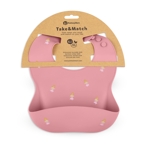 TAKE&MATCH silikonový bryndák Silikonový bryndák SAM s kapsou na zachytávání zbytků je nezbytným pomocníkem při prvních příkrmech vašeho dítěte. Poskytuje pohodlí a jistotu během krmení a zároveň pomáhá udržovat čistotu během jídla. Jedná se o řešení, které rodičům usnadňuje život a přináší pohodlí při krmení nejmenších.