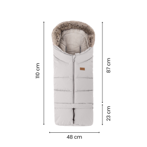 • 4v1 – odepnutím spodní části změníte velikost fusaku na menší, který se hodí i do vaničky nebo autosedačky, a připevněním kožešinky – získáte ochranu proti větru.
