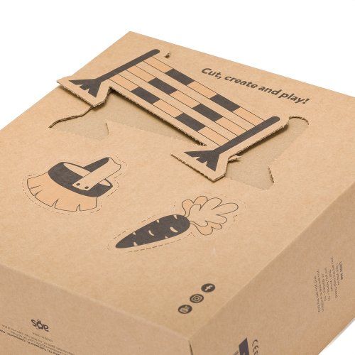 Little Joe je zabalen v krásné ekologické krabičce, která má zábavné využití. Hrací doplňky jsou vytištěny na zadní straně a díky perforaci je lze snadno vystřihnout. Krabičku lze použít i jako stáj. Balení navíc obsahuje básničku, ze které si můžete vytvořit veselou písničku. Ponořte se do světa fantazie a využijte krásnou kartónovou krabici pro svého koníka.