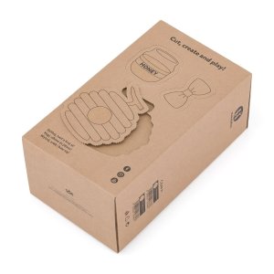 Naši plyšáci jsou zabaleni v krásných ekologických krabicích, které mají zajímavé využití. Hrací doplňky jsou natištěny na zadní straně každé krabice a díky perforaci je lze snadno vystřihnout. Krabičku lze použít také jako domeček pro medvídka.