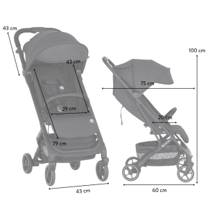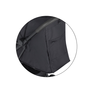 Do prostorného nákupního košíku uložíte drobný nákup nebo si sbalíte vše potřebné k výletu. Do kapsy na drobnosti ze zadní strany zádové opěrky si můžete uložit mobil či klíče. Kočárek se dobře a snadno přenáší díky úchytu zabudovanému pod suchým zipem, v části kde se nachází opěrka na nožičky. Po složení stojí sám. V kufru nezabere moc místa, protože je velmi skladný.