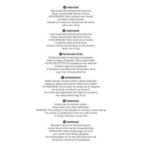 Čištění a údržba: Pokud byl podvozek kočárku vystaven slané vodě, co nejdříve jej opláchněte vodou. Produkt čistěte pomocí hadříku a jemných čisticích prostředků. Potah sedadla lze vyprat při teplotě 30 °C. Produkt neskládejte ani neukládejte, když je mokrý, ani jej neskladujte ve vlhkých podmínkách.