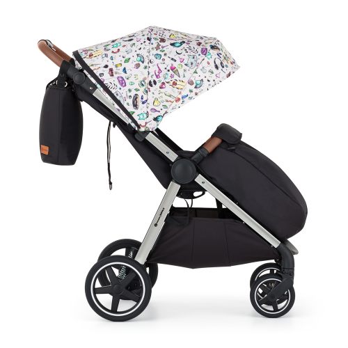 Balení obsahuje: • Konstrukci kočárku ve stříbrné barvě s madlem a rukojetí v hnědé eko-kůži • Přední a zadní celogumová kolečka • Potah sedadla • Přebalovací tašku • Černý nánožník • Stříšku • Vložku do kočárku v barvě stříšky • Polstrování – set 3 ks