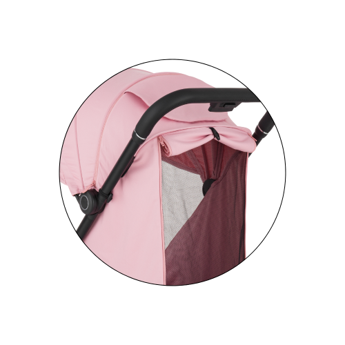 Rozšiřitelná stříška s integrovaným kšiltem s ochranou UPF50+ chrání před ostrým sluncem, zatímco rodičovské okénko s tichým magnetickým uzávěrem umožňuje nenápadný dohled bez rušení dítěte.