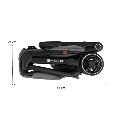 ZIP patří mezi kočárky s kabinovými rozměry po složení, takže jej můžete bez obav vzít na palubu letadla nebo uložit do kufru i menšího auta. S hmotností pouhých 7 kg jej snadno přenesete v jedné ruce, zatímco druhou povedete dítě.