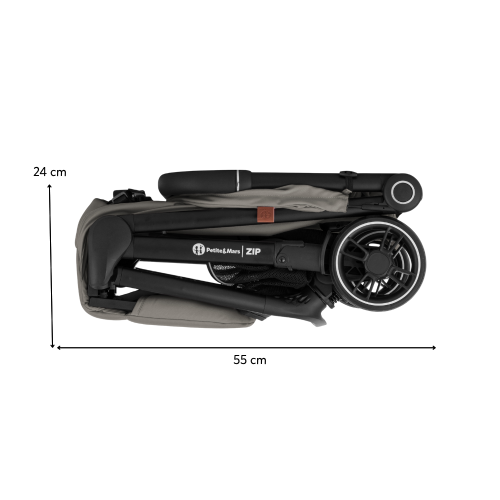 ZIP patří mezi kočárky s kabinovými rozměry po složení, takže jej můžete bez obav vzít na palubu letadla nebo uložit do kufru i menšího auta. S hmotností pouhých 7 kg jej snadno přenesete v jedné ruce, zatímco druhou povedete dítě.