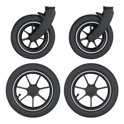 Nafukovací kolečka ke kočárku Street2 Vám pomohou hravě zvládnout nerovnosti chodníku ve městě, ale také cesty v přírodě. Set obsahuje 4 ks kol: 2 přední a 2 zadní kola.