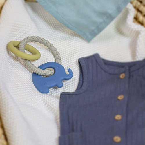 Silikonové kousátko ELEFI Měkké silikonové kousátko sestávající z kroužku se 3 zajímavými prvky je vyrobeno výhradně z potravinářského silikonu bez obsahu BPA. Nejkvalitnější odolné materiály zaručují bezpečnost vašeho děťátka během hry a prořezávání zoubků. Pružný silikon je dokonale vhodný pro citlivé dětské dásně. Pomáhá zmírnit bolest, která vzniká při prořezávání zoubků, neboť při kousání kousátka se jemně masírují dásně. Kousátko lze zchladit v chladničce a dát děťátku studené. Různé povrchy kousátka stimulují správný vývoj čelisti. Přiměřená velikost kousátka umožňuje děťátku snadné uchopení a vynikající, bezpečnou hru, která stimuluje jeho vývoj.