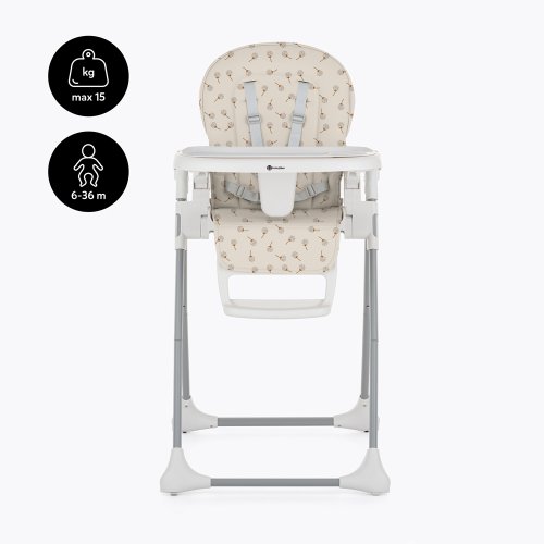 Péče o životní prostředí, kterou jsme při tvorbě této židle zohlednili, nezastínila nejdůležitější aspekty výrobku – byl totiž navržen tak, aby co nejbezpečněji zlepšil každodenní život děťátka i rodičů. Židle má všechny funkce, které usnadňují každodenní krmení: Lze ji snadno sundat a vyčistit, má 5-bodové bezpečnostní pásy, nastavitelnou opěrku zad, nastavitelnou opěrku nohou, nastavitelnou výšku, dvě polohy pro podnos s horní částí, kterou lze mýt v myčce nádobí. Stabilní konstrukce židle zajistí bezpečnost vašeho dítěte bez ohledu na to, jak je aktivní nebo pohyblivé. Vysoce kvalitní provedení, promyšlená konstrukce, moderní a originální design a kompaktní skládání jsou nadčasové vlastnosti, které zajistí pohodlí pro vaše dítě od okamžiku, kdy se naučí sedět.