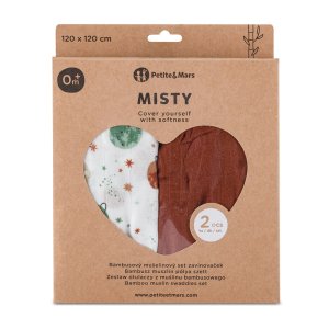 Kromě zavinovaček Misty zahrnuje řada bambusových mušelínů také bambusové pleny Moussy a roztomilého zajíčka do postýlky Huga.