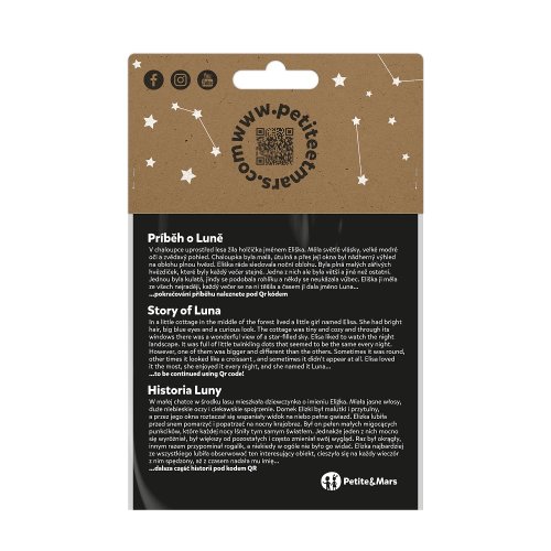 Příběh Luny V chaloupce uprostřed lesa žila holčička jménem Eliška. Měla světlé vlásky, velké modré oči a zvědavý pohled. Chaloupka byla malá, útulná a přes její okna byl nádherný výhled na oblohu plnou hvězd. Eliška ráda sledovala noční oblohu. Byla plná malých zářivých hvězdiček, které byly každý večer stejné. Jedna z nich ale byla větší a jiná než ostatní. Jednou byla kulatá, jindy se podobala rohlíku a někdy se neukázala vůbec. Eliška ji měla ze všech nejraději, každý večer se na ni těšila a časem jí dala jméno. LUNA... Jednoho dne se Eliška vydala na procházku do lesa. Byl krásný slunečný den. V lese je toho tolik co objevovat. Eliška sbírala jehličí a listy, poležela si v měkoučkém mechu, nakrmila zvířátka a pozorovala veverky. Ani se nenadála a les najednou zahalila tma. Eliška se tmy bála, protože po tmě neuměla najít cestu domů. Sedla si na pařez a plakala. V tom se na obloze objevila Luna. Eliška si promnula očka a toužebně se podívala na oblohu. „Luno, prosím ukaž mi cestu domů.“ A Luna zasvítila na lesní cestičku a dovedla Elišku do bezpečí její chaloupky.