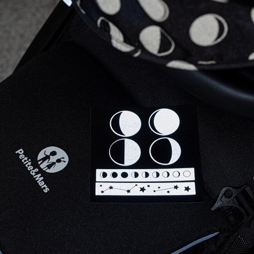 Heritage Luna ...postará se o Vás i ve tmě! Univerzální reflexní samolepky z kolekce Heritage Luna představují měsíc – lunu ve svých jednotlivých fázích. Úkolem samolepek je poskytnout Vám ochranu během večerních procházek. Samolepky jsou reflexní, odrážejí světlo kolemjedoucích aut a svítí. Tím dělají Váš kočárek viditelný i ve tmě a chrání Vás i Vaše děťátko. Samolepky jsou určeny k lepení na konstrukci kočárku, nikoli na jeho potah. Jsou vhodné pro jakýkoli model kočárku, nejen pro kočárky z kolekce Heritage Luna. Samolepky jsou vytvořeny tak, aby bylo možné nalepit je na kočárek, ať už s tenkou nebo robustnější konstrukcí a místo k nalepení si zvolte tak, jak se Vám líbí. Samolepky lepte na čistý, odmaštěný a rovný povrch, abyste zabezpečili co nejlepší přilnavost.