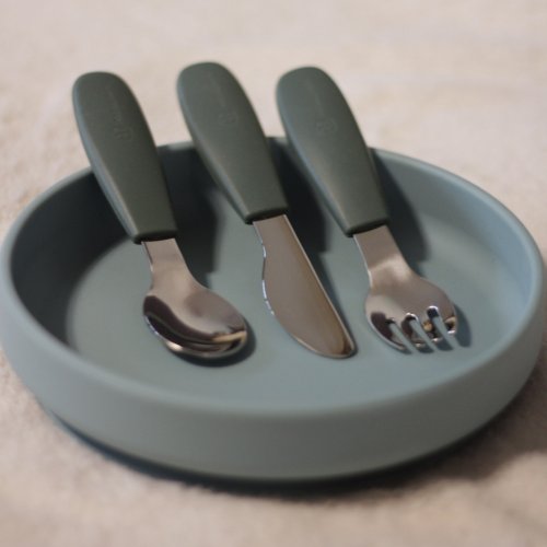 • Kompletní sada – 3 kusy: lžička, vidlička a nůž bezpečný pro děti