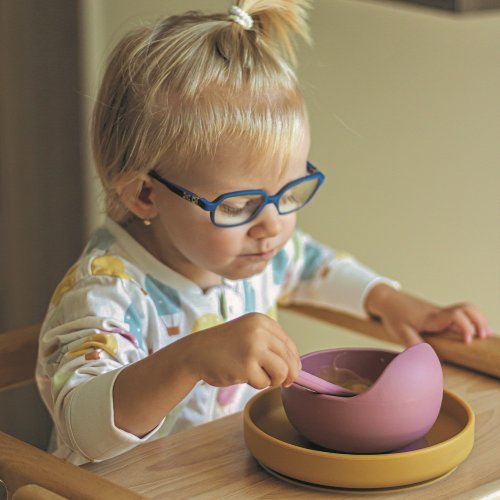 Silikonový talíř TAKE&MATCH s přísavkou Praktický talíř je celý vyroben z potravinářského silikonu bez obsahu BPA. Díky tomu jej lze bezpečně používat na všechny potraviny, teplé i studené, a jídlo v něm lze bez obav ohřívat v mikrovlnné troubě nebo uchovávat v chladničce. Díky odolnému a měkkému silikonu se nemusíte obávat, že se talíř rozbije, odštěpí nebo zdeformuje – můžete jej nepoškozený používat dlouhou dobu. Je vhodný pro děti od 6 měsíců, které se seznamují s rozšířenou stravou, a pro ty, které se již úspěšně učí jíst samy. Zaoblený tvar usnadňuje děťátku jedení. Pro pohodlí dítěte i rodičů má talíř přísavku, která přilne k povrchu stolu nebo židle.