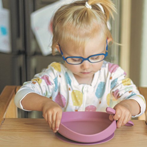 Silikonový talíř TAKE&MATCH s přísavkou Praktický talíř je celý vyroben z potravinářského silikonu bez obsahu BPA. Díky tomu jej lze bezpečně používat na všechny potraviny, teplé i studené, a jídlo v něm lze bez obav ohřívat v mikrovlnné troubě nebo uchovávat v chladničce. Díky odolnému a měkkému silikonu se nemusíte obávat, že se talíř rozbije, odštěpí nebo zdeformuje – můžete jej nepoškozený používat dlouhou dobu. Je vhodný pro děti od 6 měsíců, které se seznamují s rozšířenou stravou, a pro ty, které se již úspěšně učí jíst samy. Zaoblený tvar usnadňuje děťátku jedení. Pro pohodlí dítěte i rodičů má talíř přísavku, která přilne k povrchu stolu nebo židle.
