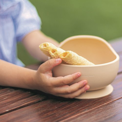 Silikonová miska TAKE&MATCH s přísavkou Šikovná a praktická miska je vyrobena z potravinářského silikonu bez obsahu BPA. Díky tomu ji lze bezpečně používat na všechny potraviny, teplé i studené, jídlo lze bez obav ohřívat v mikrovlnné troubě nebo skladovat v chladničce. Díky odolnému a měkkému silikonu se nemusíte obávat, že se miska rozbije, odštěpí nebo zdeformuje – můžete ji nepoškozenou používat dlouhou dobu. Je vhodná pro děti od 6 měsíců, které se seznamují s rozšířenou stravou a pro ty, které se již úspěšně učí jíst samy. Zaoblený tvar, kluzký vnitřek a zvýšený okraj usnadňují děťátku jedení. Pro pohodlí dítěte i rodičů má miska přísavku, která přilne k povrchu stolu nebo židle. Podmínkou fungování přísavky je čistý povrch desky stolu.