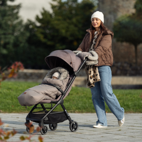 Komplet výbava pro zimní kočárkování. Hřejivý fusak Comfy 4v1 a rukavice Furry na kočárek pro maminku nebo tatínka.